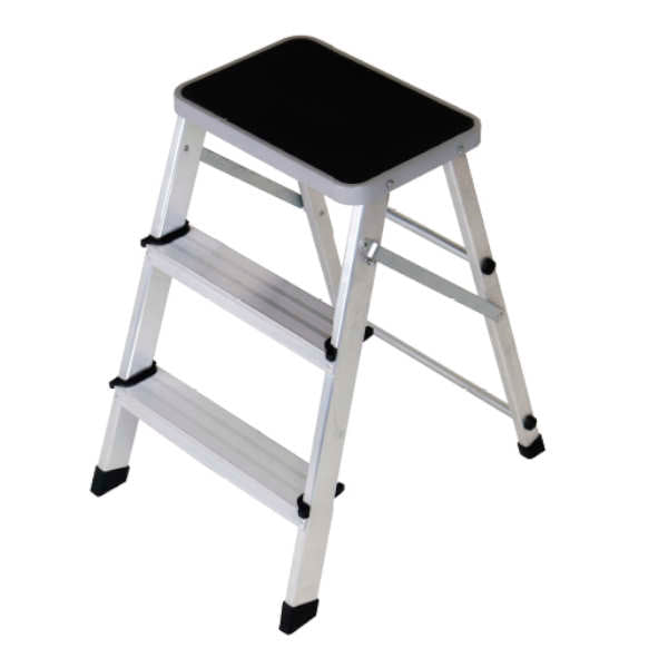 Banco escadote em alumínio para uso doméstico.