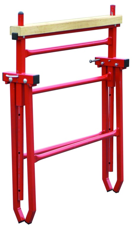 - Em posição de cavalete (altura 83 cm), possibilidade de trabalhar em superfície plana (viga de madeira) simplesmente invertendo os montantes da viga (largura útil 80 cm).