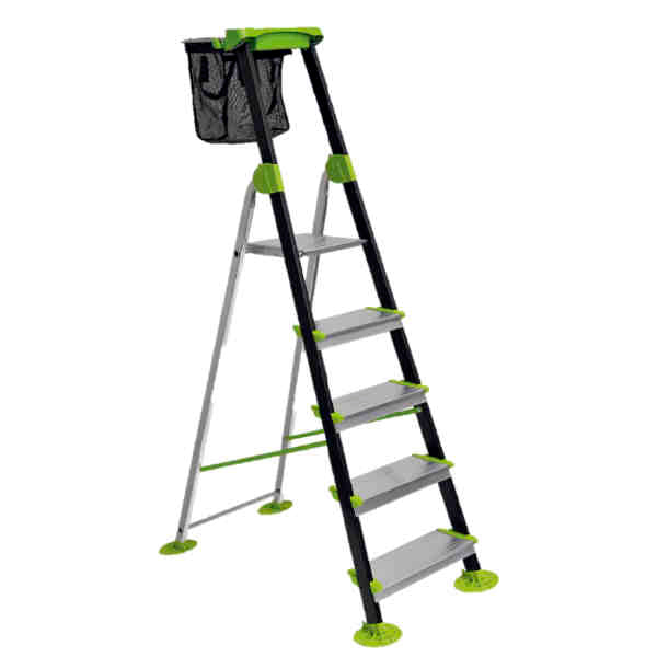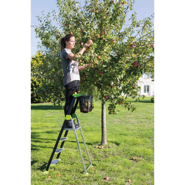 Escadote adequado para jardinagem, hortifruticultura e agricultura bem como em tarefas de Bricolage.