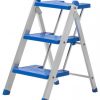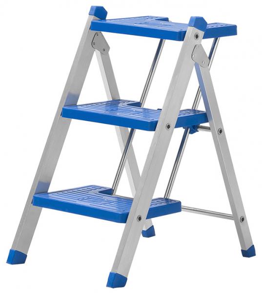 Robusto banco escadote em alumínio, rebatível, ideal para uso bricolagem.