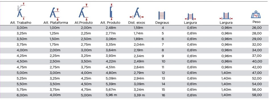 - Ampla plataforma em alumínio 600x465mm com rodapés de resguardo de 150mm;