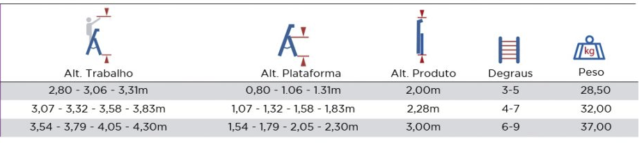 - Permite utilização tanto em solos planos como desnivelados ou escadas;
