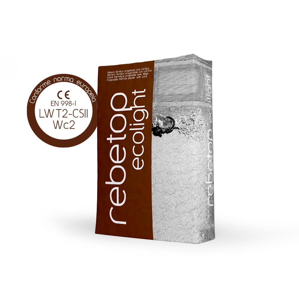 Rebetop Ecolight é uma argamassa leve e térmica, formulada com agregados de cortiça, para regularização e proteção de paredes e tetos em interior e exterior.
