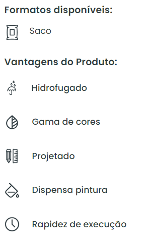 - Insere-se no grupo das monomassas e caracteriza-se como um reboco monomassa colorido.