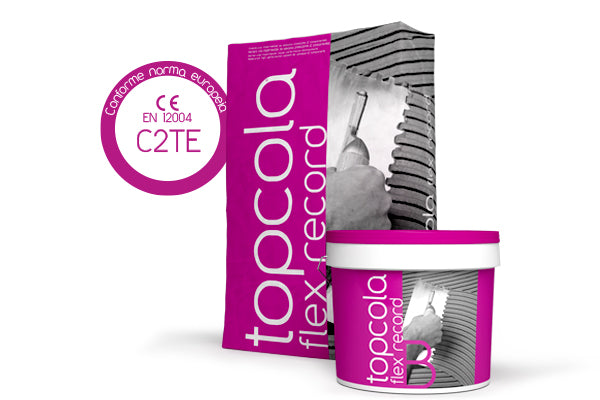 - Colagem de peças cerâmicas de grandes formatos e baixa porosidade (grés e porcelanatos), pedras naturais (mármores, granitos e calcários). A Topcola Flex Record permite a colagem de pedra natural (mármores, granitos e calcários) e peças cerâmicas com absorção de água > 0,5%, em fachadas, com dimensões máximas de 3600 cm2 e espessuras até 2 cm.