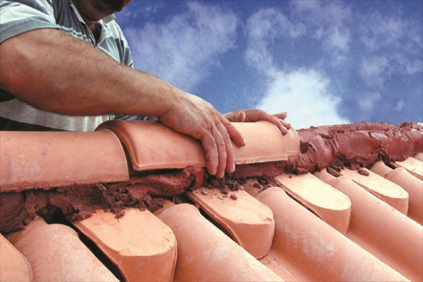 Argamassa para trabalhos de cobertura, calafetagem e montagem de telhas.