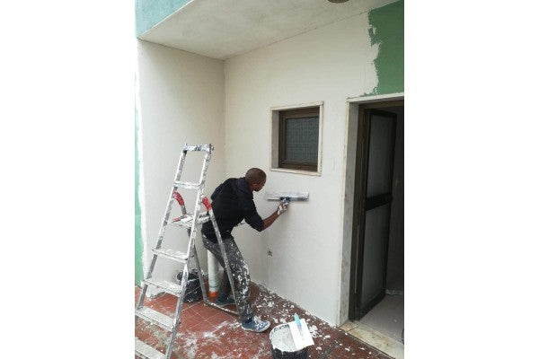 Regulariza rebocos defeituosos e/ou fissurados antes da pintura ou colagem cerâmica.