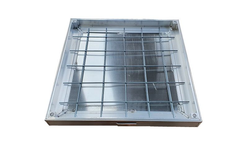 Tampa com altura de enchimento de 40mm e uma rede em malha de aço que permite o enchimento com diferentes acabamentos (tijoleira cerâmica, pedra de calçada, betão, resinas, soalhos de madeira, etc.).