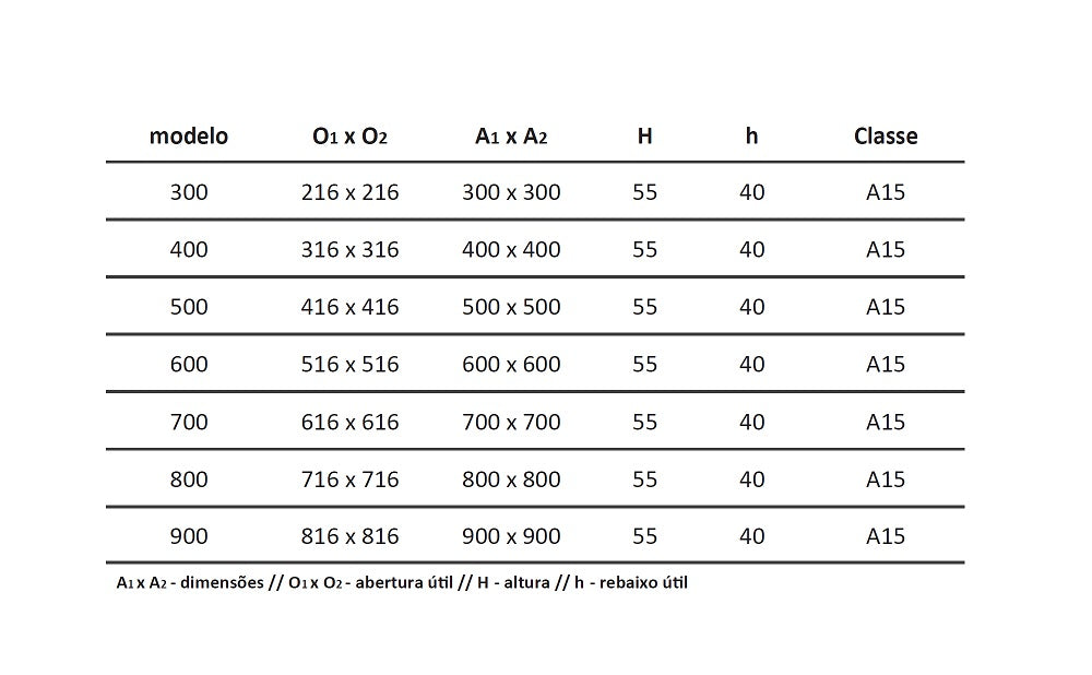 - Munida de pegas maciças nos cantos, com sistema de aparafusamento. Aro com dupla junta de vedação em EPDM garantindo a estanqueidade aos odores da caixa;