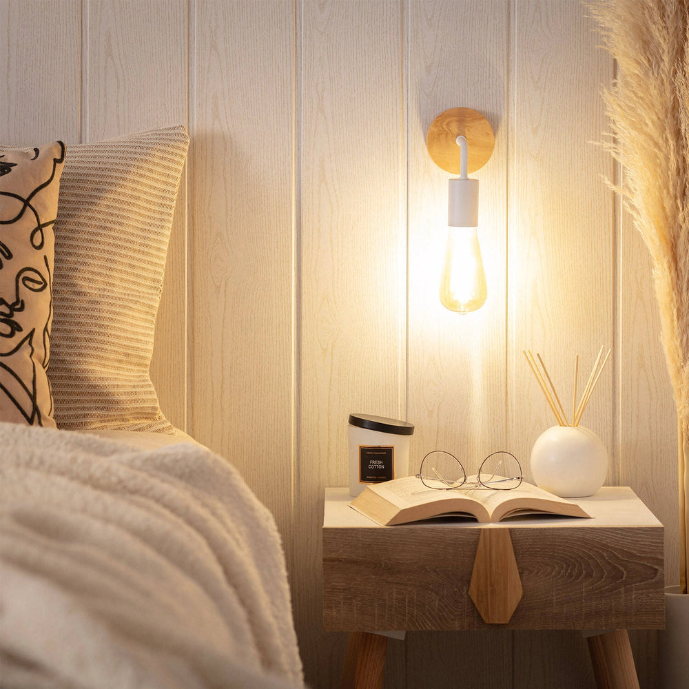O Candeeiro de Parede Jedali é feito de metal com um suporte de madeira que traz calor e equilíbrio ao ambiente. A luz emitida pelo candeeiro dependerá da lâmpada LED E27 que instalarmos. Desta forma, podemos escolher uma luz quente, fria ou neutra, dependendo da atmosfera que queremos criar. Uma opção interessante é optar por algumas das lâmpadas RGB ou CCT que nos darão versatilidade extra ao iluminar o espaço, seja numa casa ou em instalações comerciais. É amplamente utilizado em ambientes tão variados como salas de jantar, quartos, cozinhas, salas de estar, restaurantes, cafés, etc.