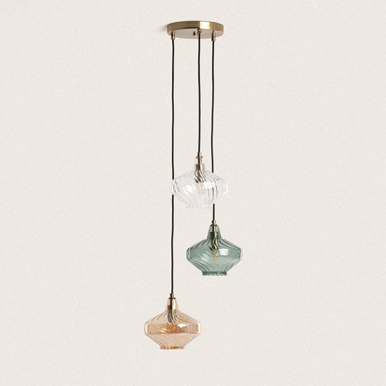 Iluminação / Iluminação de Decoração / Candeeiro Suspenso Metal e Vidro Blas 3 Focos