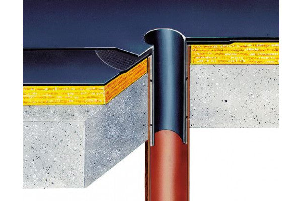 É um dos sistemas mais válidos para conectar tubos de águas pluviais e drenos em telhados planos, calhas em telhados de várias inclinações e edifícios industriais.