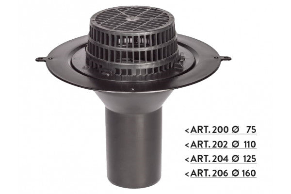 É um dos melhores sistemas para ligação a tubos pluviais, as medidas correspondem à norma UNI EN 1451-1, o acoplamento é feito em tubos com vidros e juntas de vedação (sem adesivos).