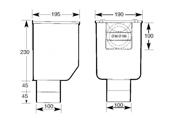 Caixa de drenagem cinzenta para recolha de ralos verticais ou horizontais - Italprofili 118G.