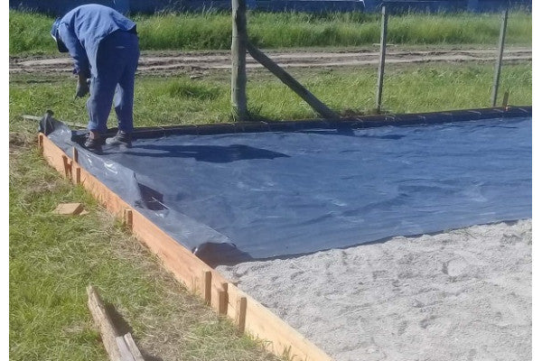 Membrana sintética composta por uma película de polietileno de baixa densidade, obtida por extrusão, cor preta.