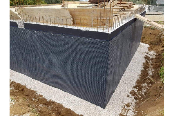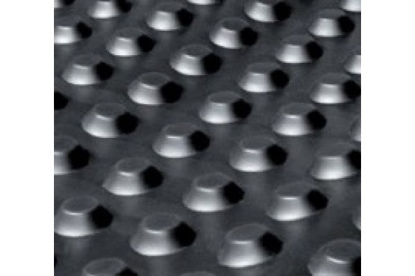 Lâmina modular de polietileno de alta densidade para drenagem e ventilação de muros e paredes enterradas.