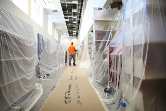 Descrição: O FloorShell® é uma solução premium de proteção temporária de pavimentos, desenvolvida para garantir segurança e durabilidade em ambientes de construção e renovação. Fabricado com fibras 100% recicladas, combina resistência profissional com consciência ecológica. Adapta-se a diferentes superfícies como madeira, betão, vinil, pedra e azulejo, protegendo eficazmente contra impactos, poeiras e até maquinaria pesada. A tecnologia Spill Block® bloqueia a passagem de líquidos como tinta, água ou lama, mantendo o espaço limpo e seguro.