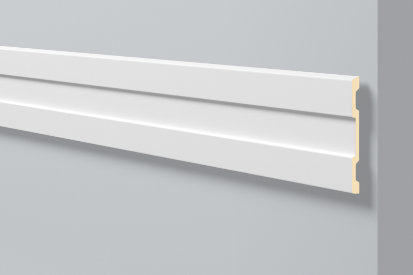 Moldura de parede em poliestireno de alta densidade, pré-pintado e junta adesiva.