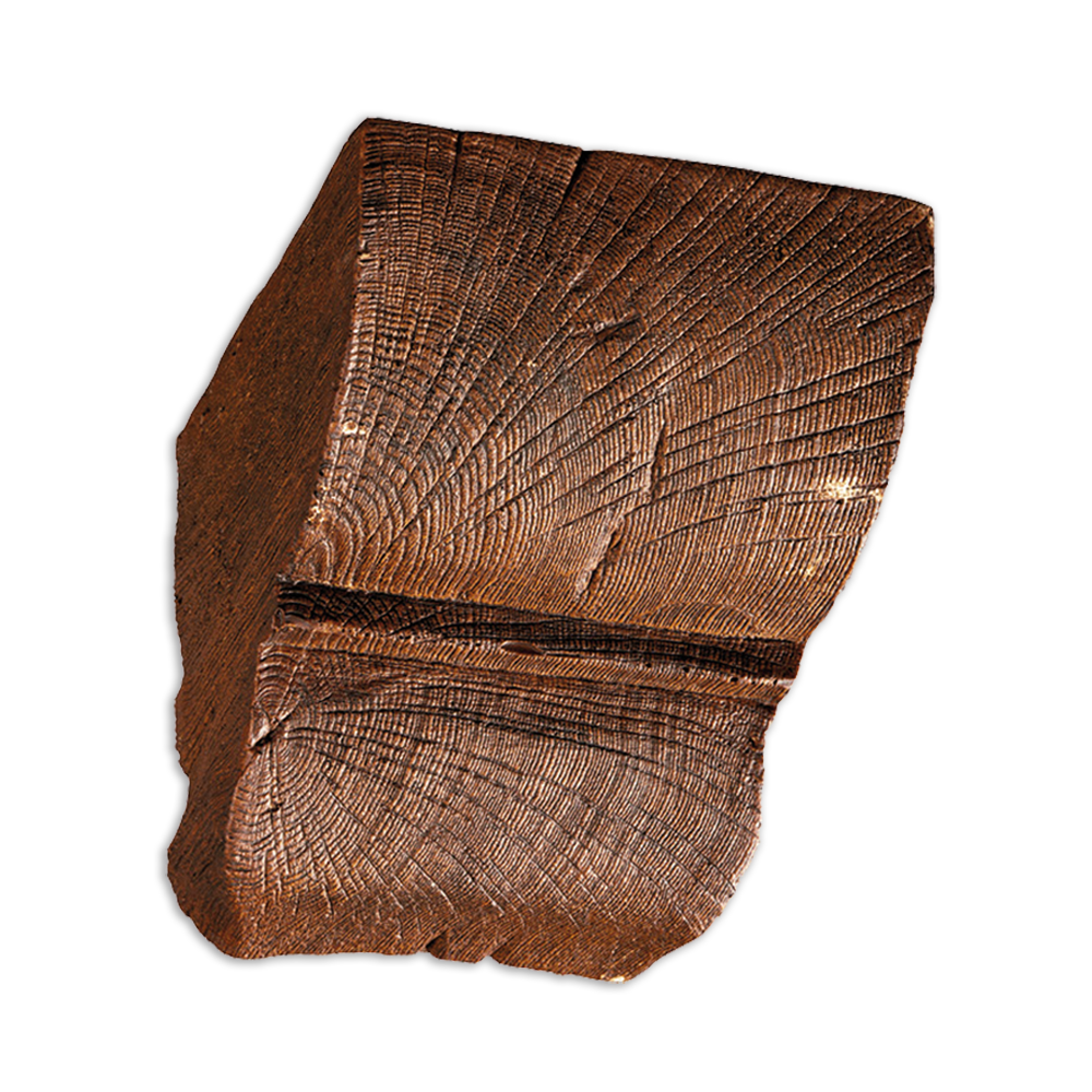 Suporte para vigas de imitação de madeira real em poliuretano moldado.