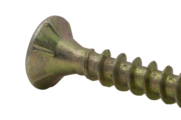 Parafuso de cabeça plana com rosca completa, bricomatado (amarelo zincado).