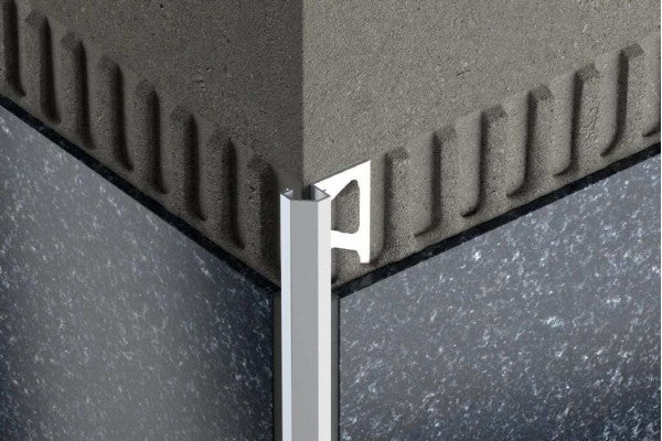 Perfil remate de alumínio com esquina biselada de 45° com opção com e sem aba de fixação.