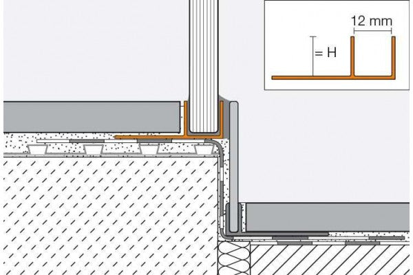 Devido à forma em U o perfil é ideal para elementos de vidro para chuveiros à face do solo.