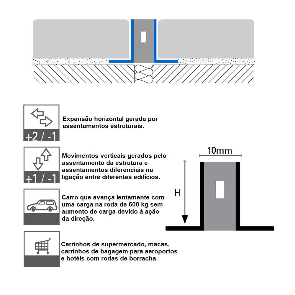 Juntas de dilatação compostas por uma estrutura metálica e um preenchimento central flexível, porém durável, que pode ser retificado e polido no local.