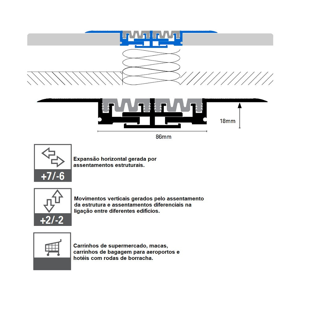 Projetado para suportar movimentos estruturais de edifícios de grande porte ou conjuntos de edifícios.
