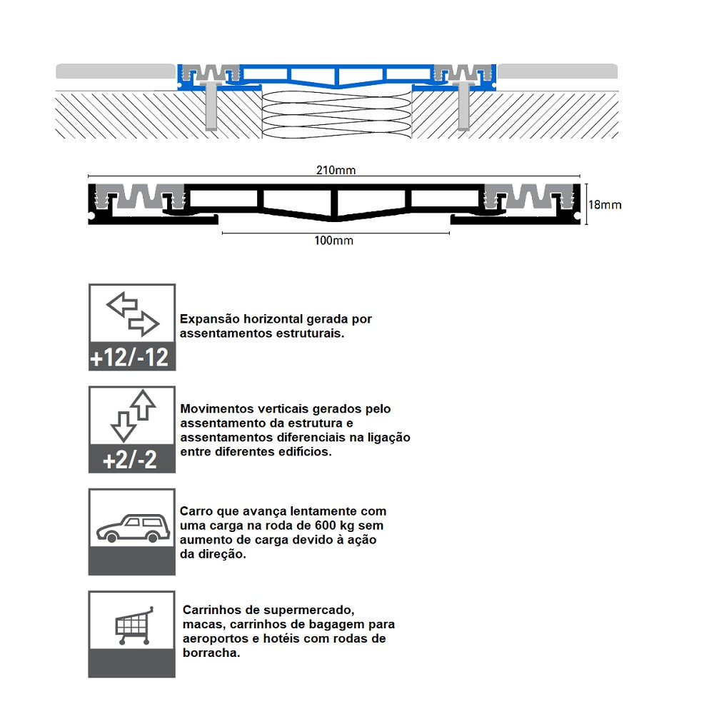 São juntas de dilatação modulares patenteadas e feitas sob medida de acordo com as larguras necessárias.