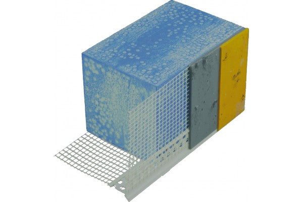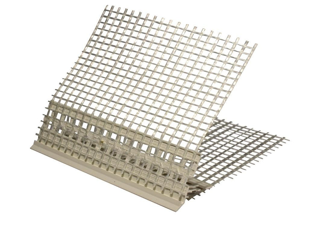 Em pvc e rede de fibra de vidro para acabamentos exatos e robustos de ângulos horizontais, varandas, portas, janelas.
