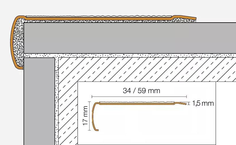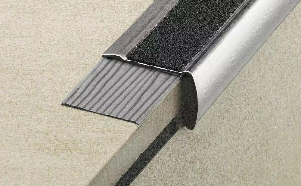 - Estes perfis têm uma superfície de contacto antiderrapante colada e são adequados para serem colados nas arestas dos degraus, especialmente para a instalação posterior em arestas danificadas, para que não tenham de ser substituídas.