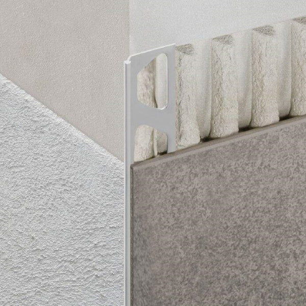 - O Schlüter-FINEC-AC é um perfil terminal de alta qualidade em alumínio anodizado para os cantos externos de revestimentos cerâmicos, mosaicos de vidro ou superfícies de argamassa de espátula e reboco.