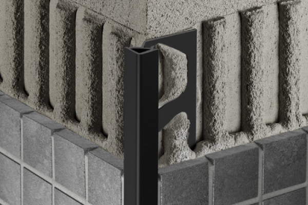 Um pequeno batente define a junta entre o perfil e a cerâmica.
