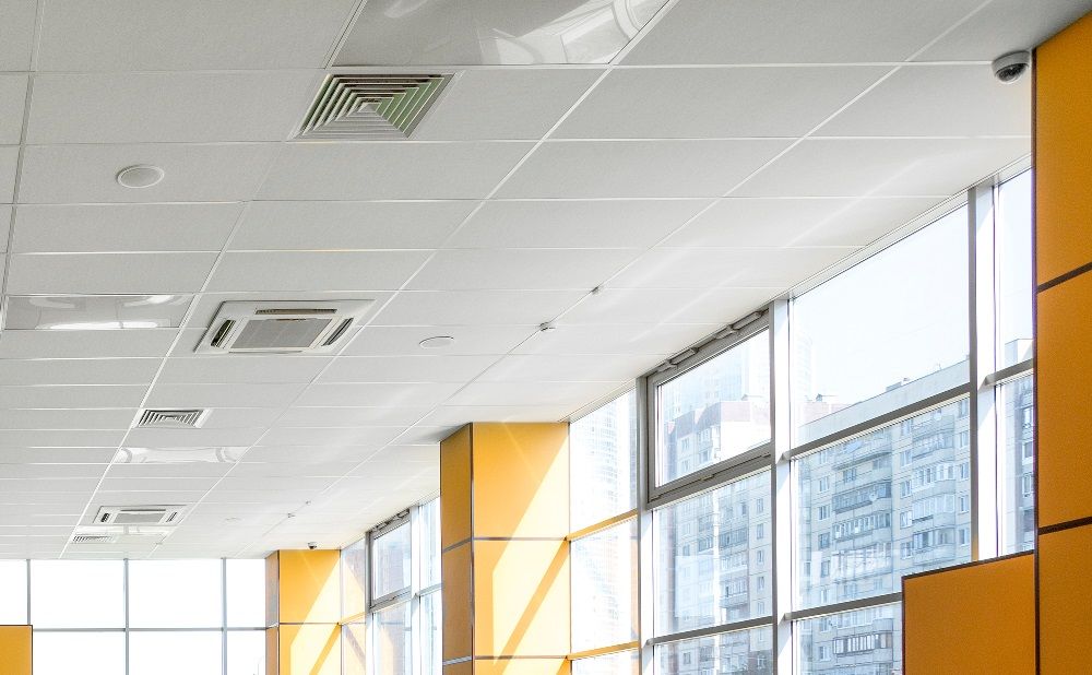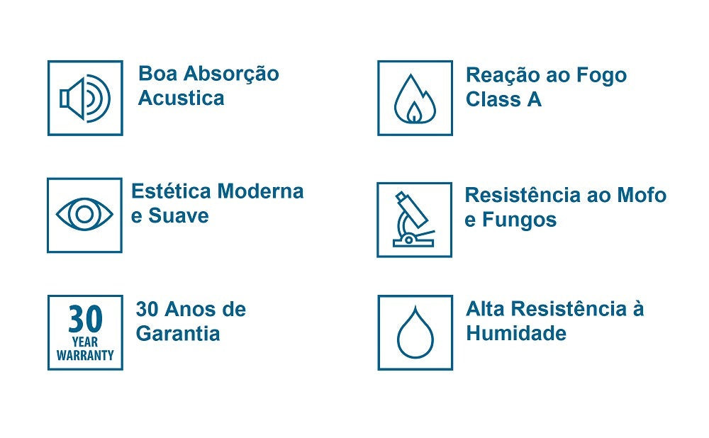 As placas de forro acústico Rockfon Artic® são fabricadas em lã de rocha e apresentam uma absorção sonora padrão (NRC 0,75) e