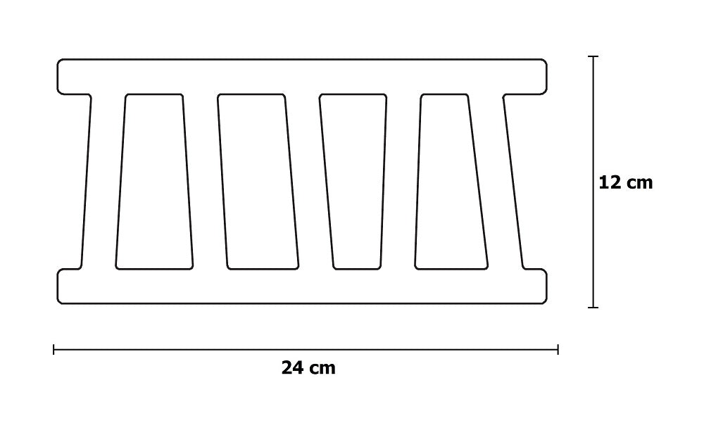 Dimensões: 12 x 24 cm; espessura: 8 cm