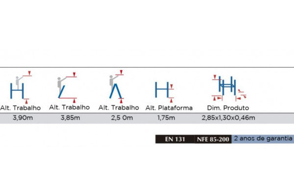- Plataforma combinada em alumínio/madeira antiderrapante 1,30×0,46m;