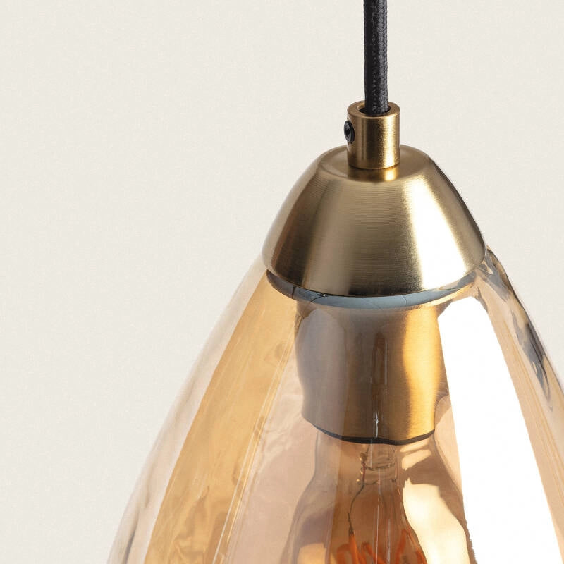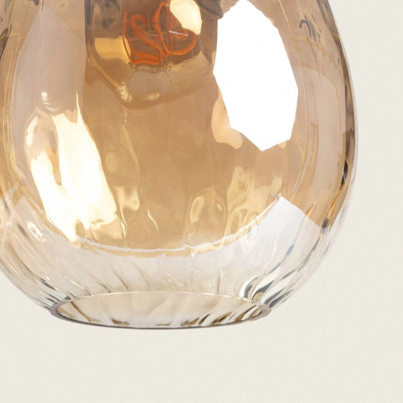 O Candeeiro Suspenso Vidro Eloy é feito de metal e vidro. O seu abajur é a sua principal caraterística de design, trabalhando com uma forma ergonómica, muito semelhante a uma gota de água, com subtis relevos interiores que recordam os candeeiros clássicos dos anos 20.