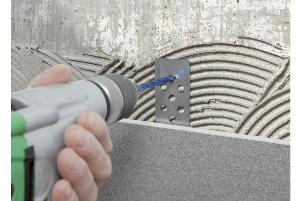 - aplicar o azulejo com cola e furar num dos furos com broca;