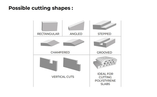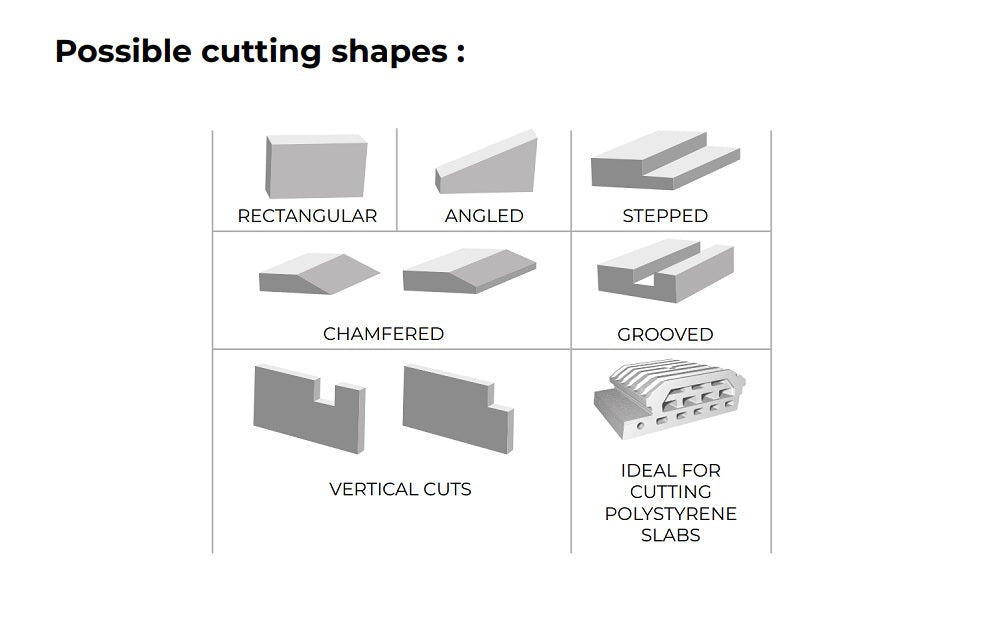 Corte limpo sem projeção de esferas de poliestireno. Para poliestireno expandido e extrudido (EPS e XPS).