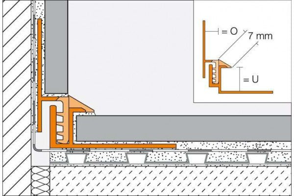 Perfil dilatação união macho/fêmea para ângulos parede/pavimento.