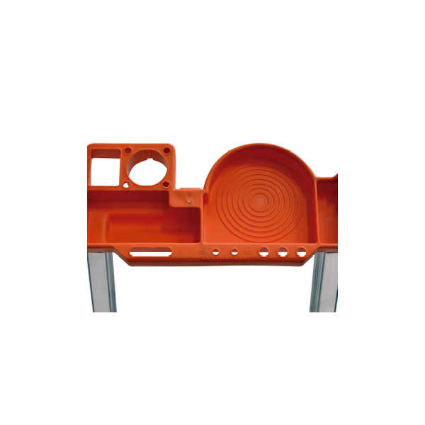 - Prateleira porta-objectos, compartimentada, com régua de escala graduada, com gancho para balde de peso até 30 kg.