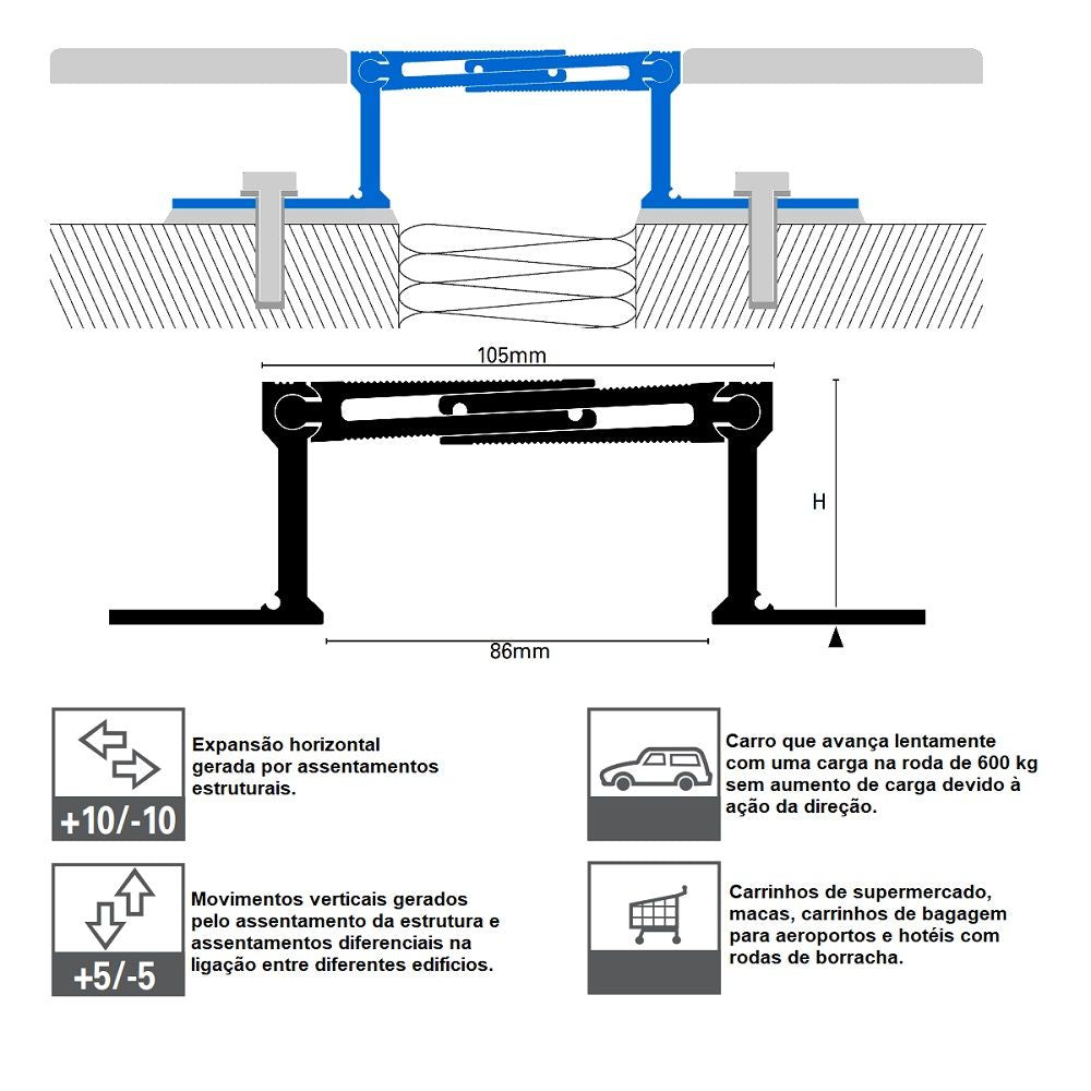 - Essa junta técnica liga esses espaços, movendo-se tridimensionalmente para acomodar o assentamento estrutural e material de um edifício.