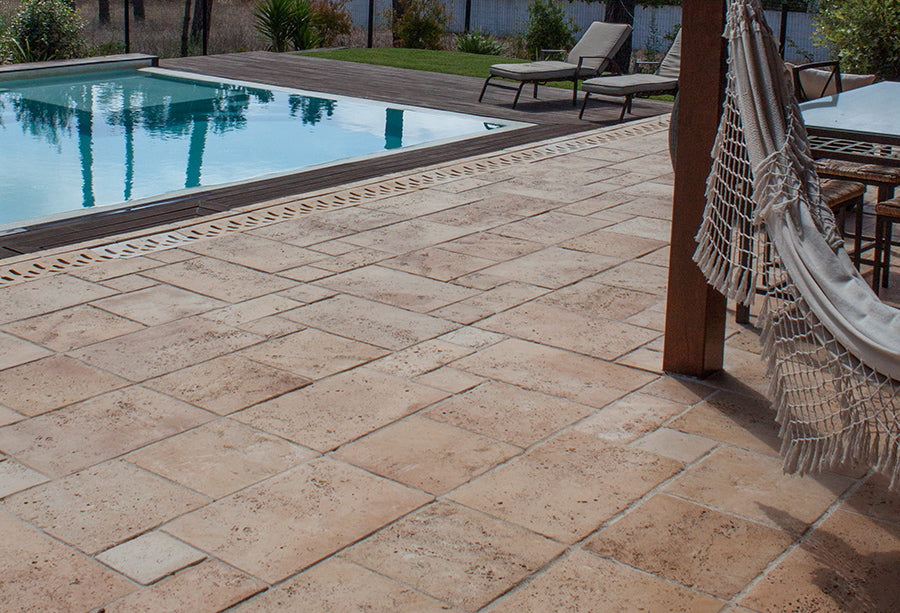 O pavimento Traverti foi desenvolvido para aplicação em espaços a pavimentar