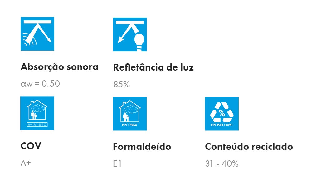 O AMF ECOMIN Orbit Micro é uma solução de teto com ótimo custo-benefício e uma superfície microperfurada e de textura fina.