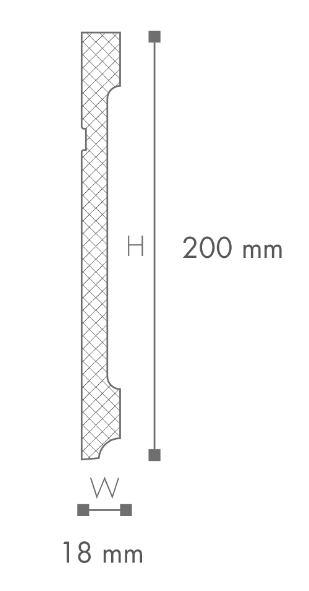 Rodapé em poliestireno de alta densidade. Pré-pintado.