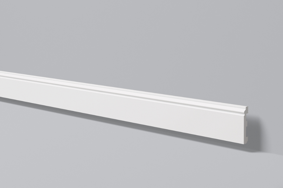 Rodapé em poliestireno de alta densidade. Pré-pintado.